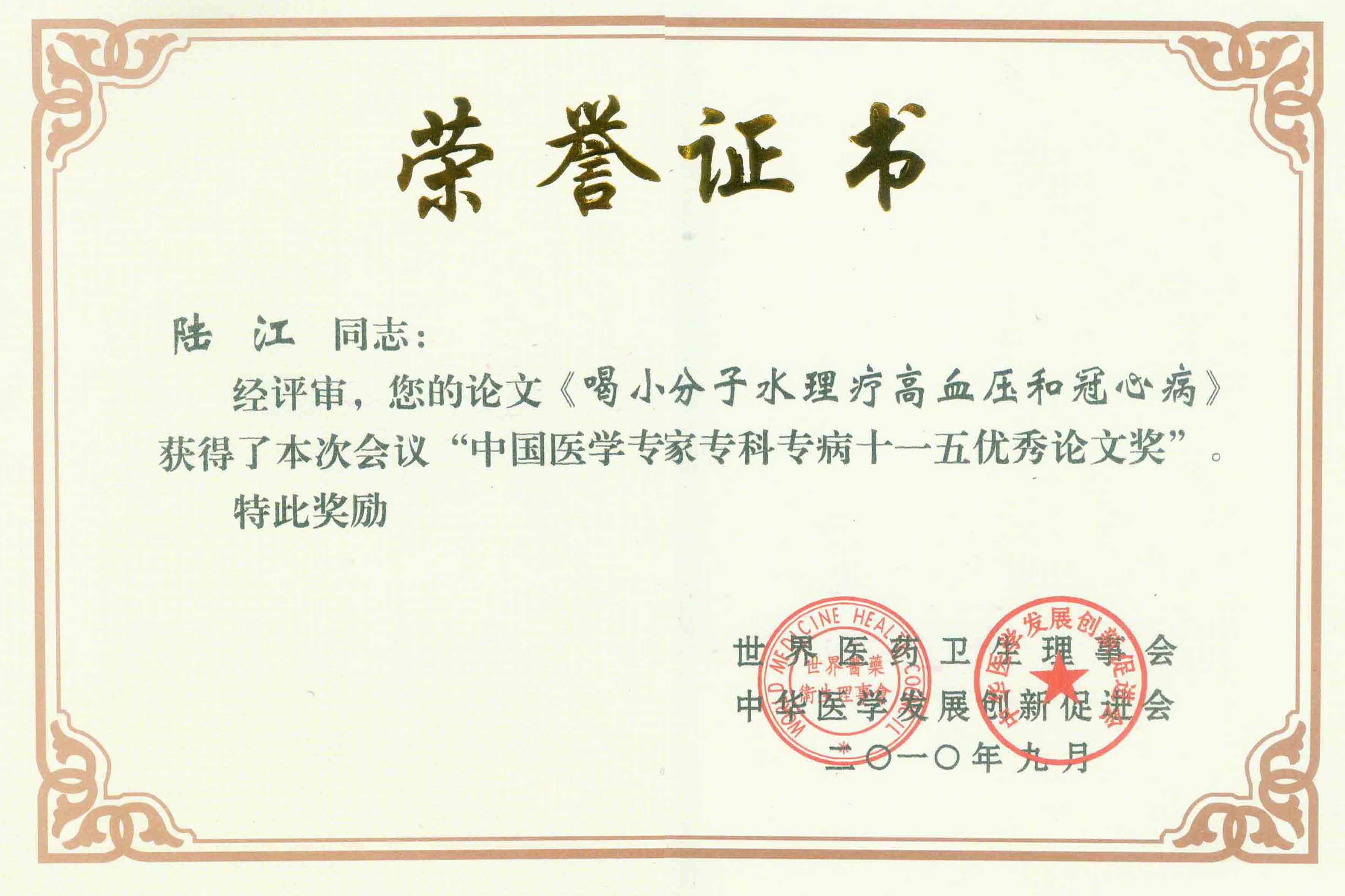 陸江獲得中國醫(yī)學(xué)??茖2?yōu)秀專家恃別貢獻獎