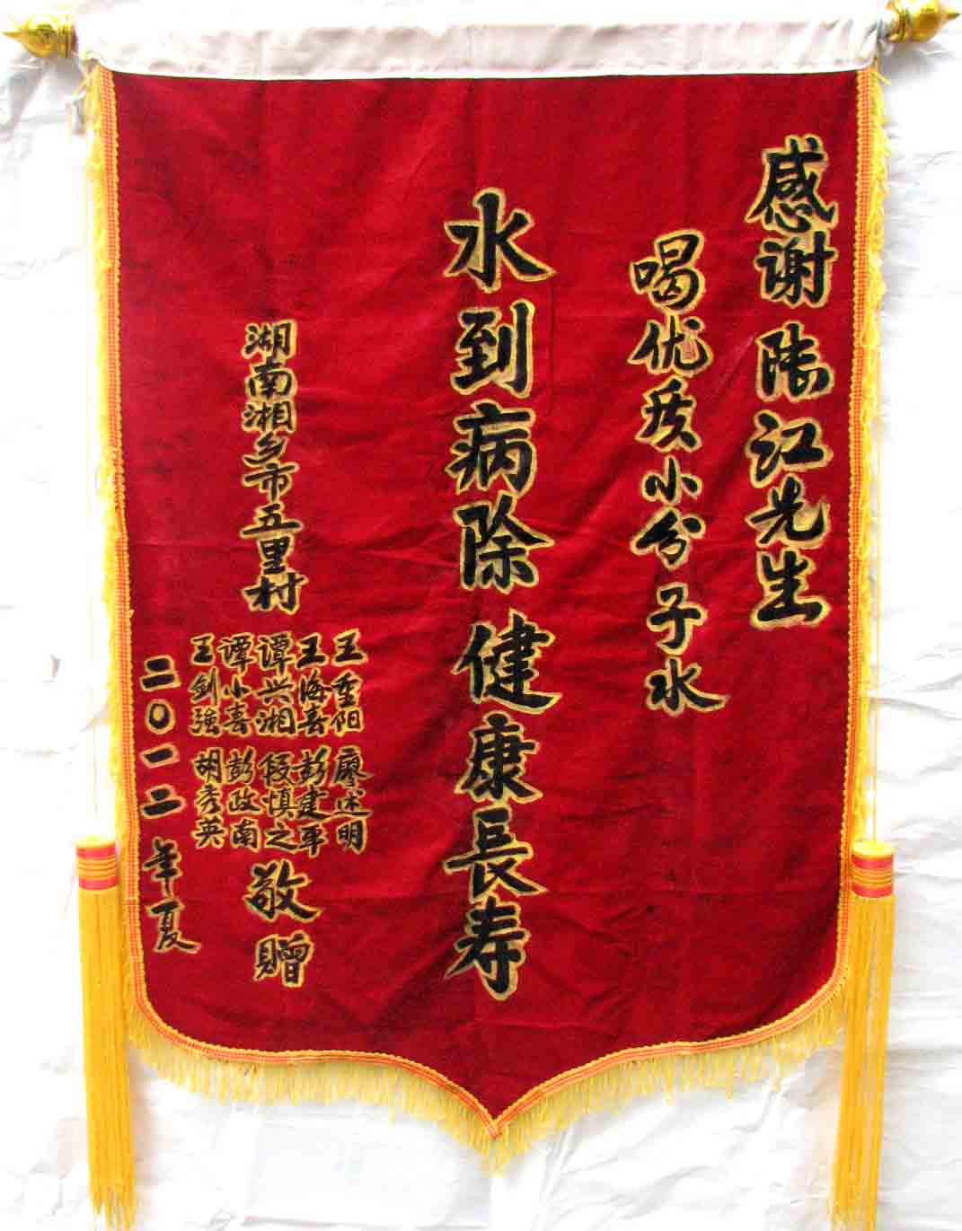 新疆63歲的賀兆生飲用一年,冠心病未愈,他用電話介紹是食堂管理員,問他食量多少?說吃七八分飽,睡前還吃兩袋牛奶,陸 江說我在論文和書中多次批判“吃七八分飽”,關(guān)照患者務(wù)必用“己饑方食”控制主食肉食量,要他把牛奶改在早中餐吃,減少主食肉食量,建議不吃晩餐,晚上只吃一個蘋果,再經(jīng)幾個月補水節(jié)食,治愈了21年的冠心病和肥胖、失眠等病,信中由衷地感激陸 江為再生父母。[13]因為醫(yī)生從未過問他的膳食習(xí)慣,只管開處方藥或手術(shù),父母也不會叫他不吃晩飯。